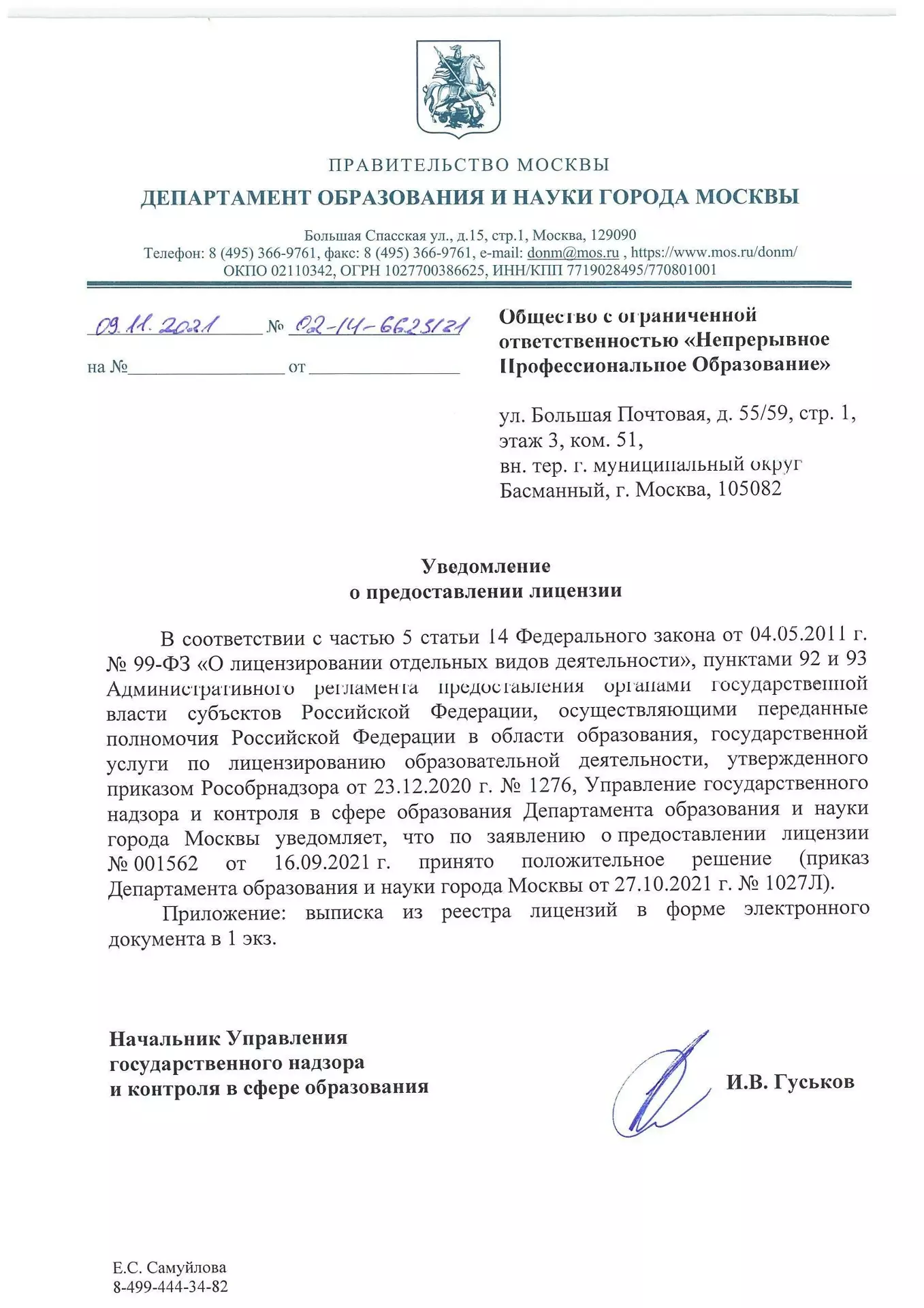 Осуществляем образовательную деятельность на основе лицензии №041769 (Л035-01298-77/00179867)
